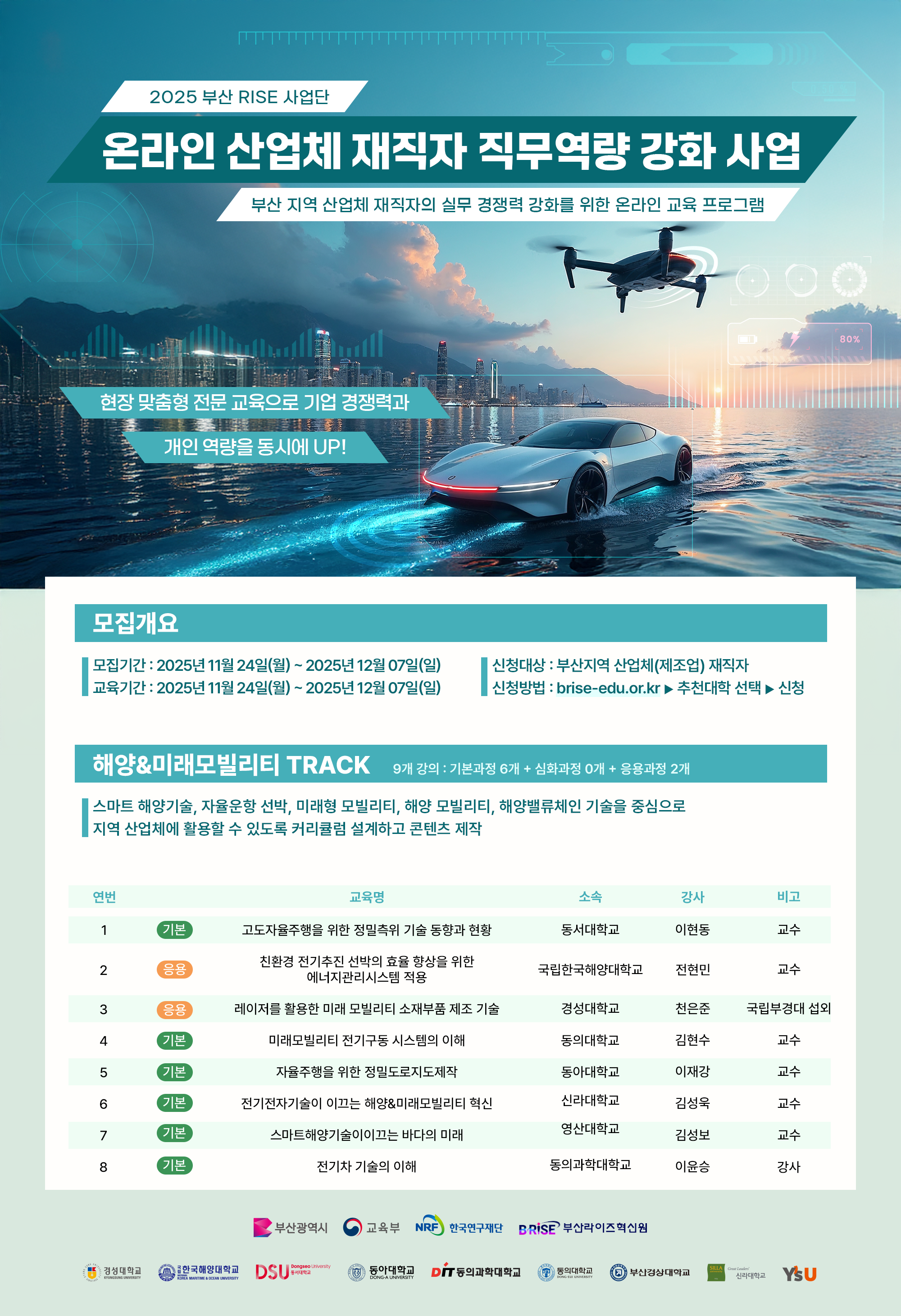 [RISE] 2025년 온라인 산업체 재직자 직무역량 강화 사업 신청자 모집 안내(해양&미래모빌리티 트랙)